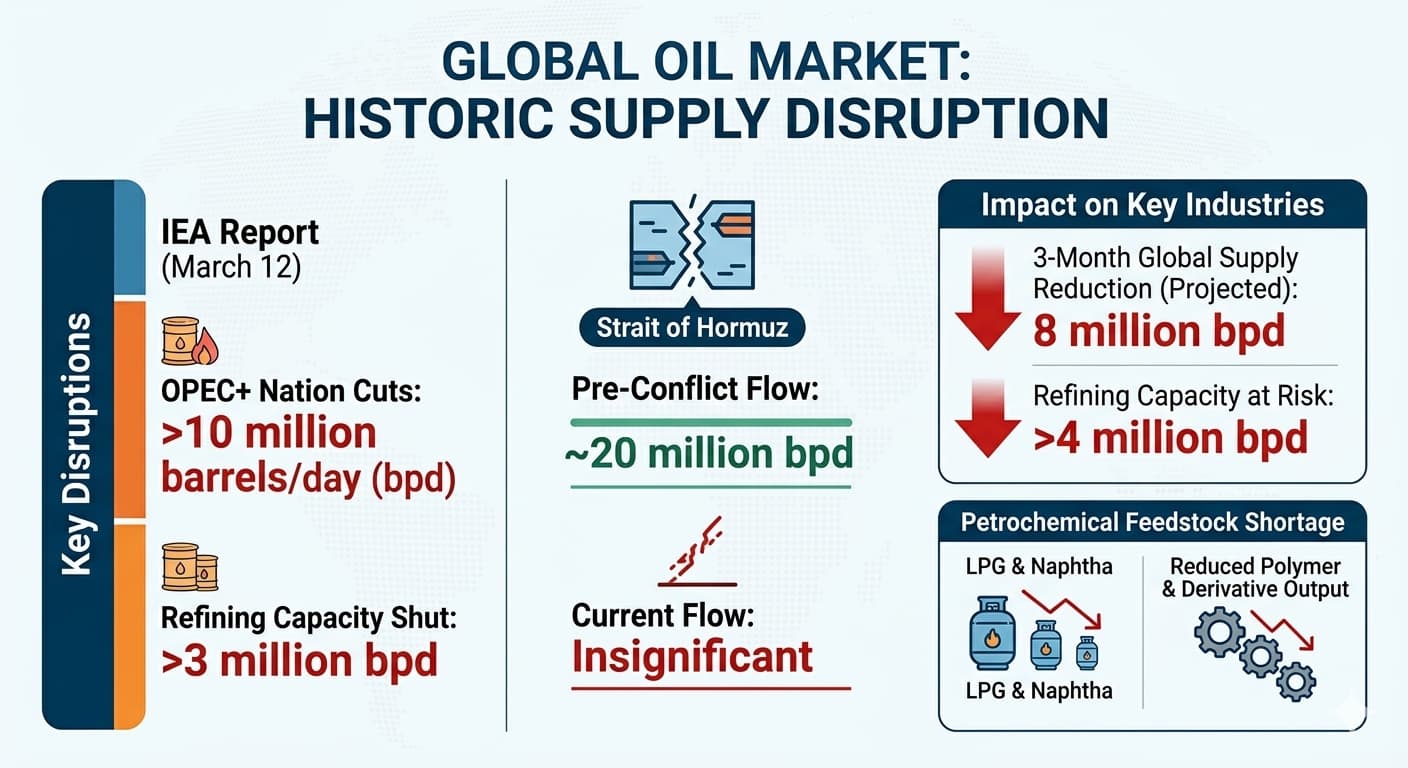 On March 12, the International Energy Agency (IEA) stated in its latest monthly report that the global oil market is facing the most severe supply disruption in history due to the ongoing conflict in the Middle East. With shipping through the Strait of Hormuz nearly disrupted and storage facilities nearing capacity, Gulf states have been forced to cut oil production by at least 10 million barrels per day, and over 3 million barrels per day of refining capacity has been shut down.